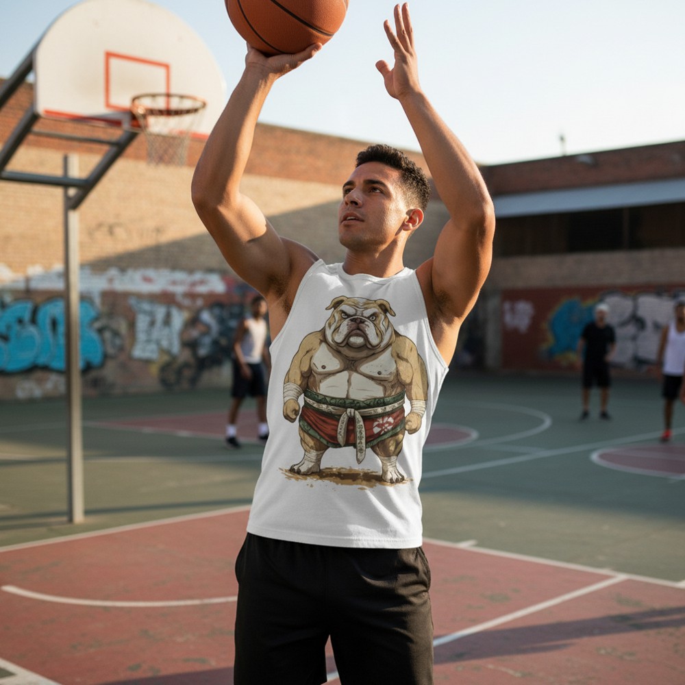 Koszulka bez rękawków BULLDOG SUMO KING od DK Syndicate inspirowana jest humorem pop-kultury i światem sumo. Wyrazista grafika buldoga w stylu sumo tworzy zabawny, mocny charakter idealny na trening i codzienne stylizacje z dystansem.