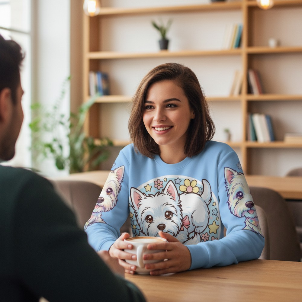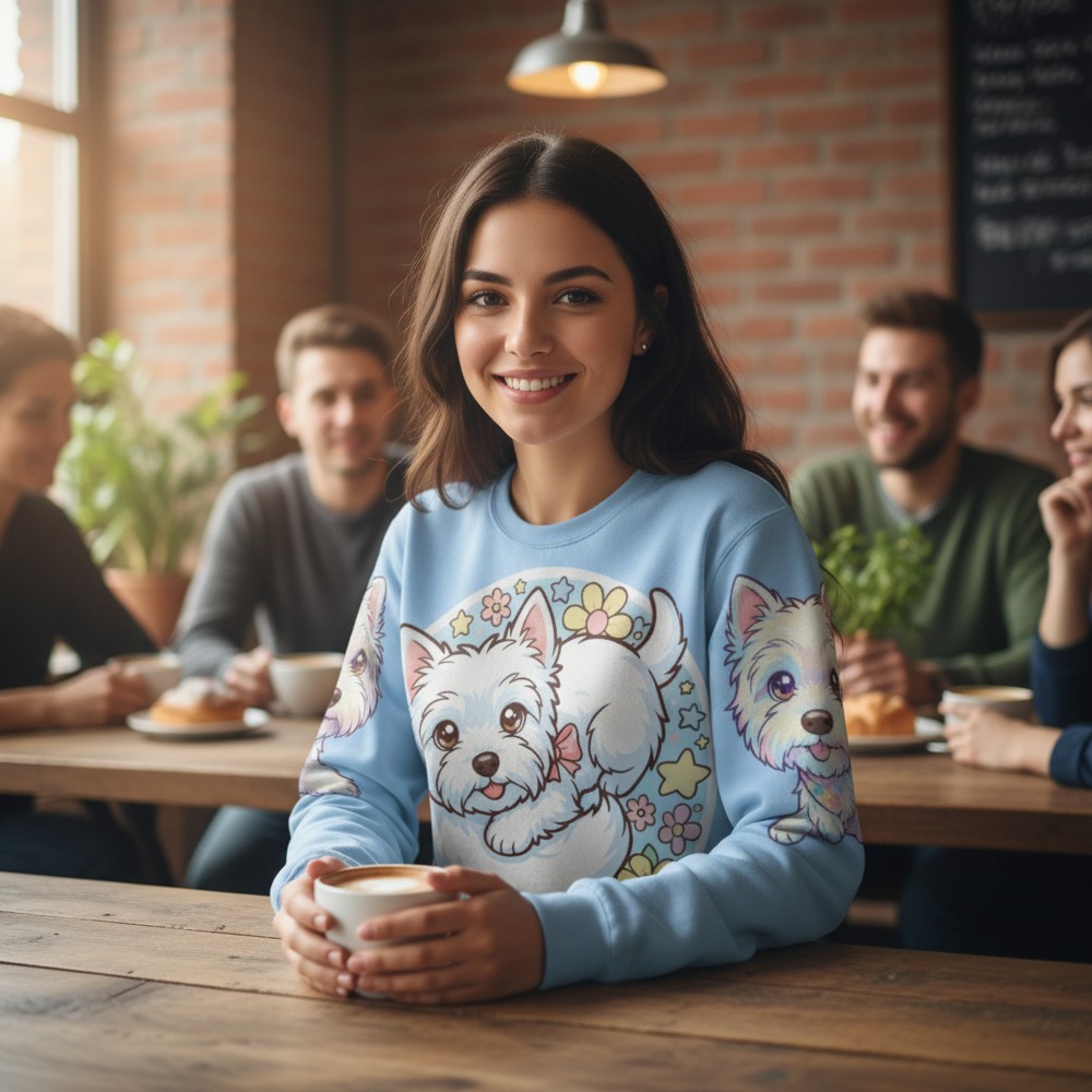 Niektóre rzeczy po prostu poprawiają humor od pierwszego spojrzenia. PASTEL PUPPY VIBES to bluza dla tych, którzy kochają lekkość, słodycz i pozytywną energię zamkniętą w pastelowej estetyce. Na froncie pojawia się uroczy, puchaty szczeniak otoczony kwiatami i delikatnymi detalami, które nadają całości bajkowy, ciepły klimat. To grafika, która przyciąga uwagę i wywołuje naturalny uśmiech. Tył bluzy wypełnia powtarzalny wzór małych piesków, tworząc spójną i zabawną kompozycję, która wygląda lekko, świeżo i bardzo stylowo. Rękawy dopełniają całość, dodając projektowi charakteru i pełnego, dopracowanego looku. Miękka bawełna i wygodny krój sprawiają, że ten pancerz dobrej energii idealnie sprawdza się na co dzień — kiedy chcesz czuć się swobodnie, komfortowo i po prostu dobrze.