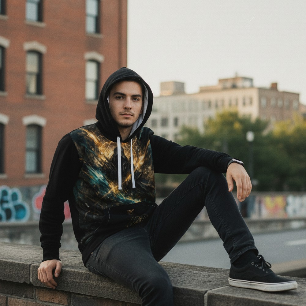 Bluza męska z kapturem zapewniająca komfort noszenia, ciepło oraz nowoczesny styl streetwear.
