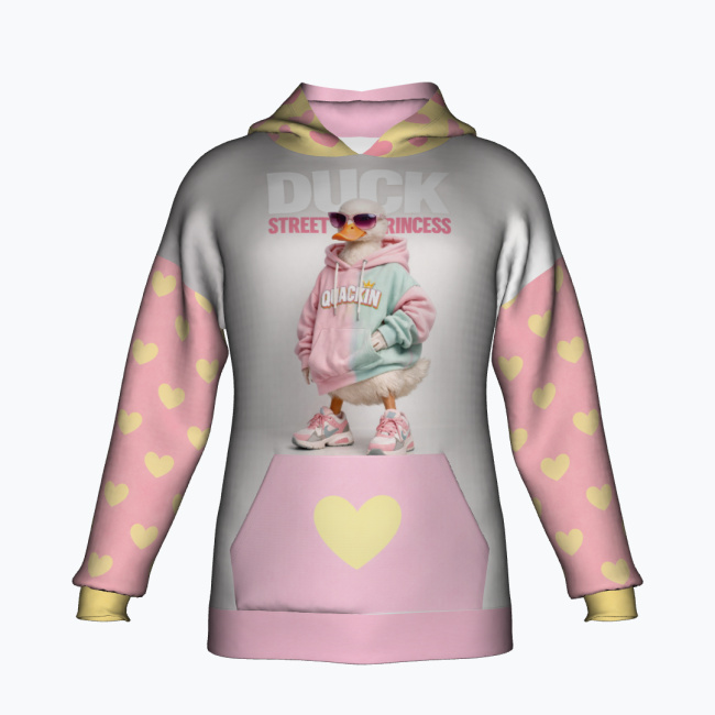 Bluza oversize DUCK STREET PRINCESS od DK Syndicate inspirowana stylem kawaii i streetwear. Full color sublimation print zapewnia wysoką szczegółowość i trwałość nadruku. Modny styl cute z charakterem.