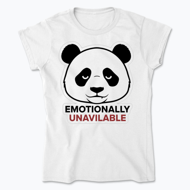Damski t-shirt EMOTIONALLY UNAVAILABLE od DK Syndicate z minimalistyczną grafiką pandy. Styl casual z humorem.