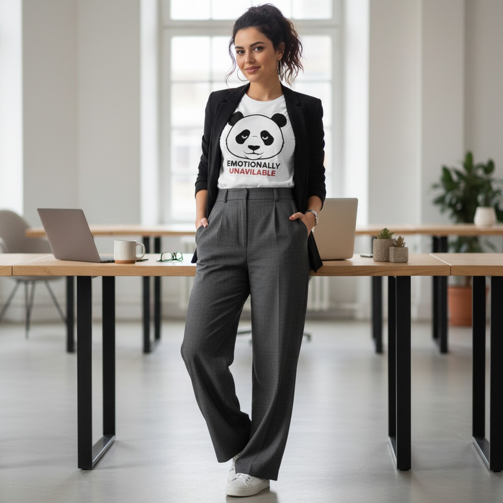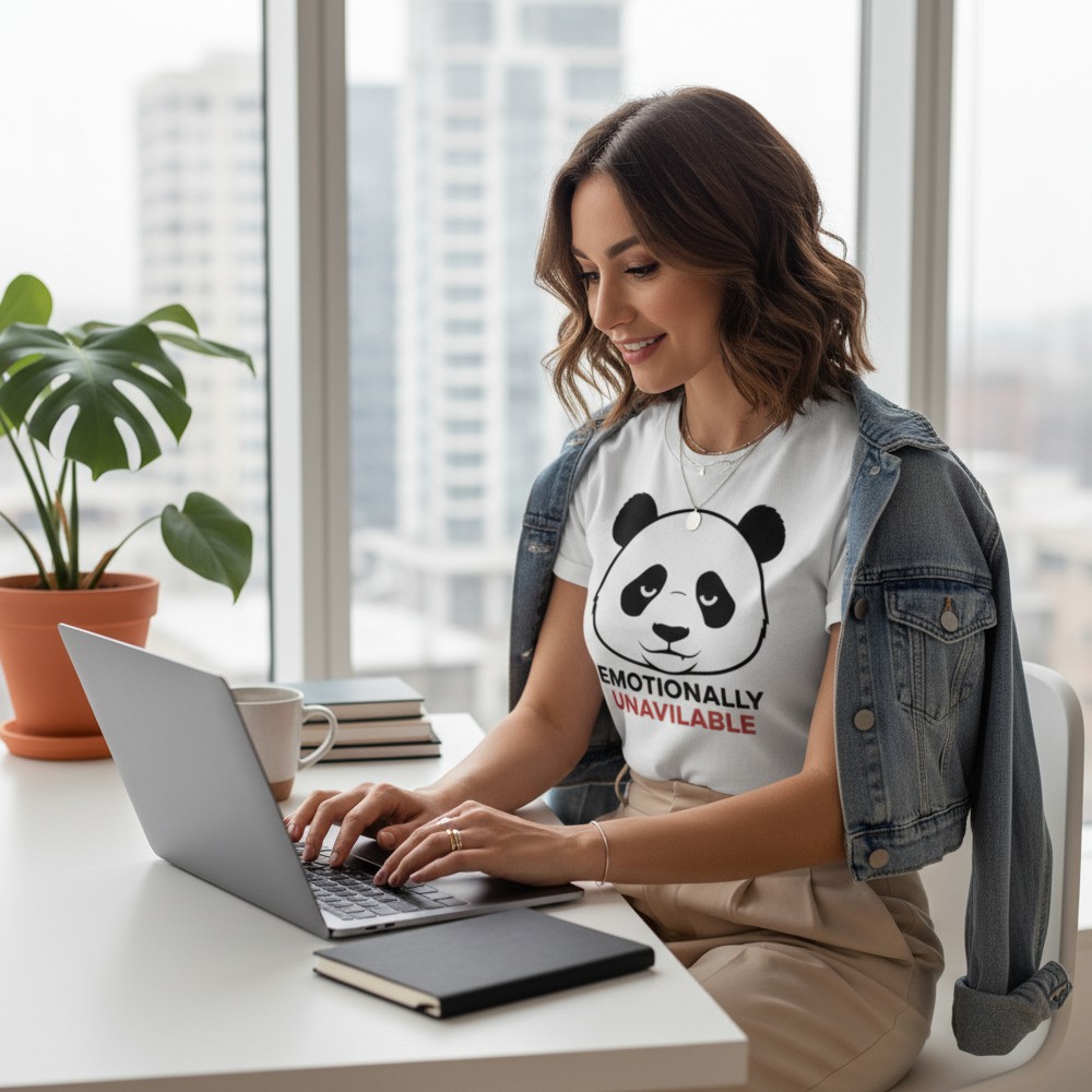 Minimalizm z lekkim dystansem. EMOTIONALLY UNAVAILABLE to projekt inspirowany spokojem, niezależnością i subtelnym humorem. Panda symbolizuje balans między wrażliwością a potrzebą zachowania przestrzeni dla siebie. Prosta, kontrastowa grafika sprawia, że koszulka jest uniwersalna i łatwa do stylizacji. Projekt idealny dla osób, które cenią minimalizm oraz modę z przekazem. Spokój ponad dramat.