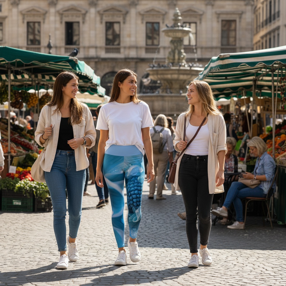 Legginsy OCEAN BLOOM od DK Syndicate inspirowane są podwodnym światem oceanu i delikatnym ruchem morskiej roślinności. Dynamiczny, organiczny wzór tworzy świeży, naturalny styl idealny na trening, jogę i codzienne aktywności.
