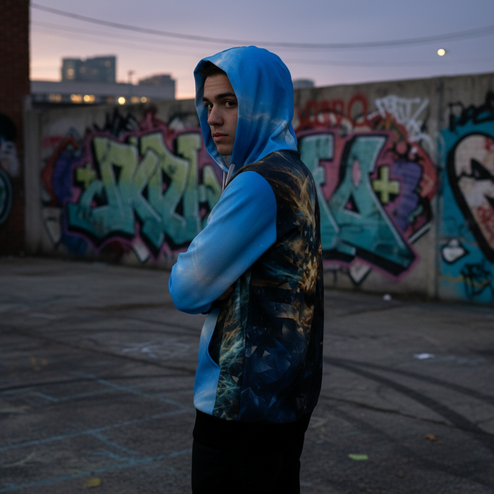 Bluza męska THE ARCHITECT OF REALITY od DK Syndicate inspirowana kosmiczną energią i futurystyczną estetyką. Full color print zapewnia wysoką szczegółowość i trwałość nadruku. Nowoczesny styl z charakterem.